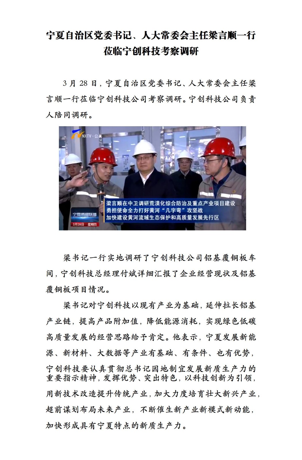宁夏自治区党委书记、人大常委会主任梁言顺一行 莅临宁创科技考察调研